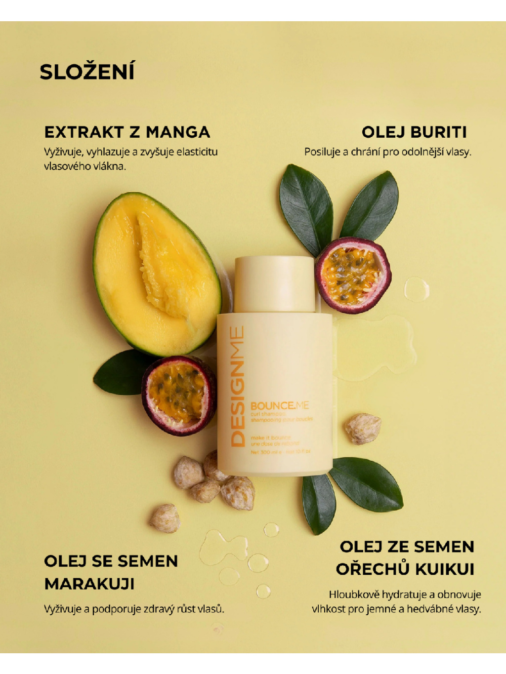 K optimálnímu použití použijte BOUNCE.ME Curl Conditioner nebo lze spárovat a sladit s jinými DESIGNME kondicionéry / maskou pro vyvážení specifických potřeb vlasů.